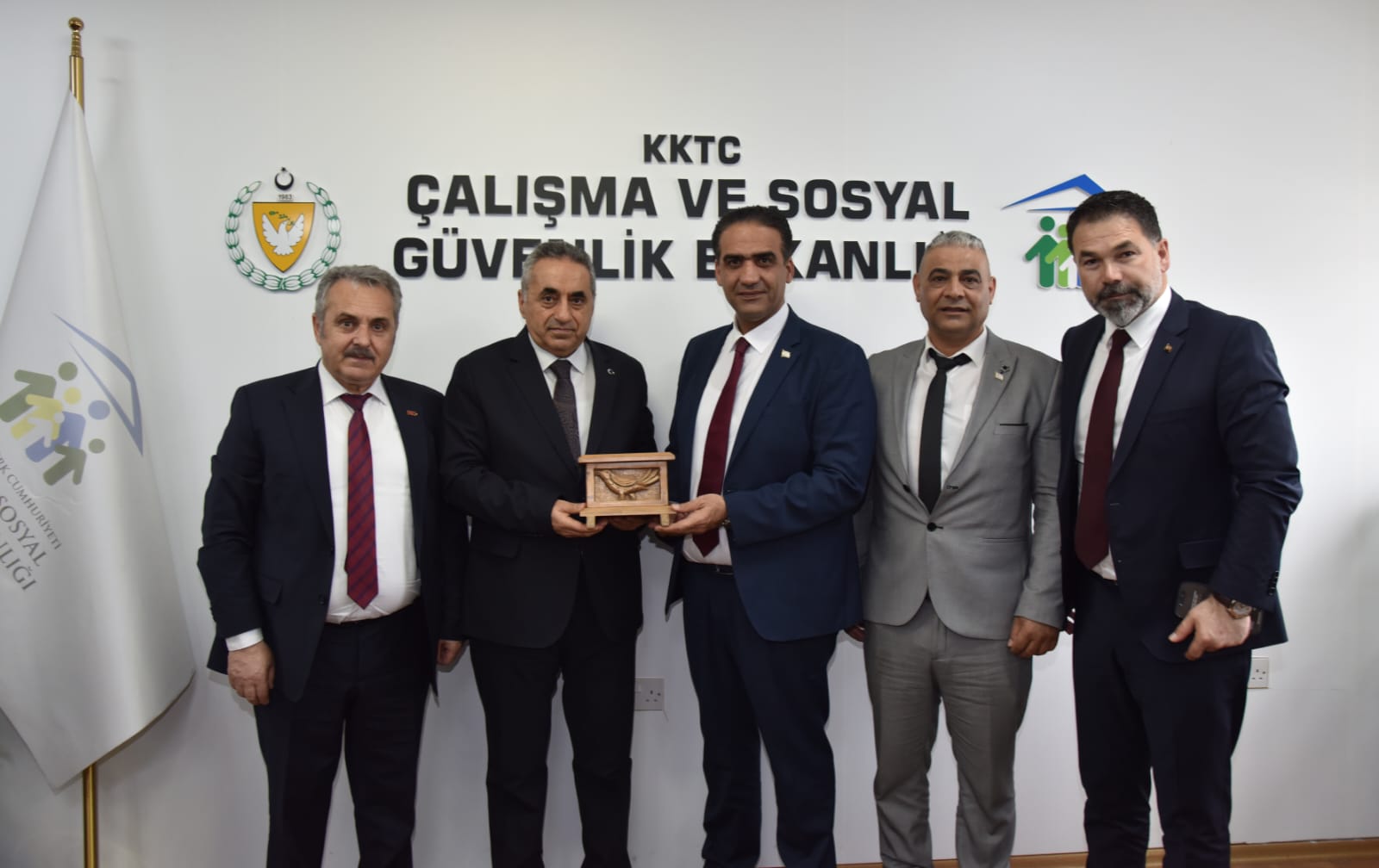 Çalışma ve Sosyal Güvenlik Bakanı Sadık Gardiyanoğlu, Kıbrıs Türk Memur-Sen’in davetlisi olarak adaya gelen Türkiye Kamu-Sen Genel Başkan Yardımcısı, Türk Büro Sen Genel Başkanı Türkeş Güney ile Türkiye Kamu-Sen Genel Başkan Yardımcısı, Türk Tarım Orman Sen Genel Başkanı Ahmet Demirci’yi kabul etti.