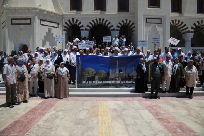 Türkiye Diyanet İşleri Başkanlığı 2024 yılı hac organizasyonuyla Suudi Arabistan’a gitmek üzere yola çıkan hacı adayları için Haspolat’taki Hala Sultan Camii’nde “Hacı Uğurlama Programı” yapıldı.