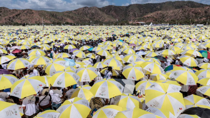 Katolik Kilisesinin 266’ncı Papası olarak 2013’ten beri görevde olan Papa Franciscus, Güneydoğu Asya turu kapsamında ziyaret ettiği Doğu Timor’daki bir parkta tören düzenledi.