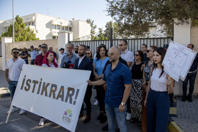 Kıbrıs Türk Öğretmenler Sendikası (KTÖS), Türkiye Cumhuriyeti Lefkoşa Büyükelçiliği önünde eylem yaptı. Genel Sekreteri Burak Maviş, “siyasete yapılan müdahaleler sonucunda okulların açılmayacak noktaya getirildiğini” söyledi.