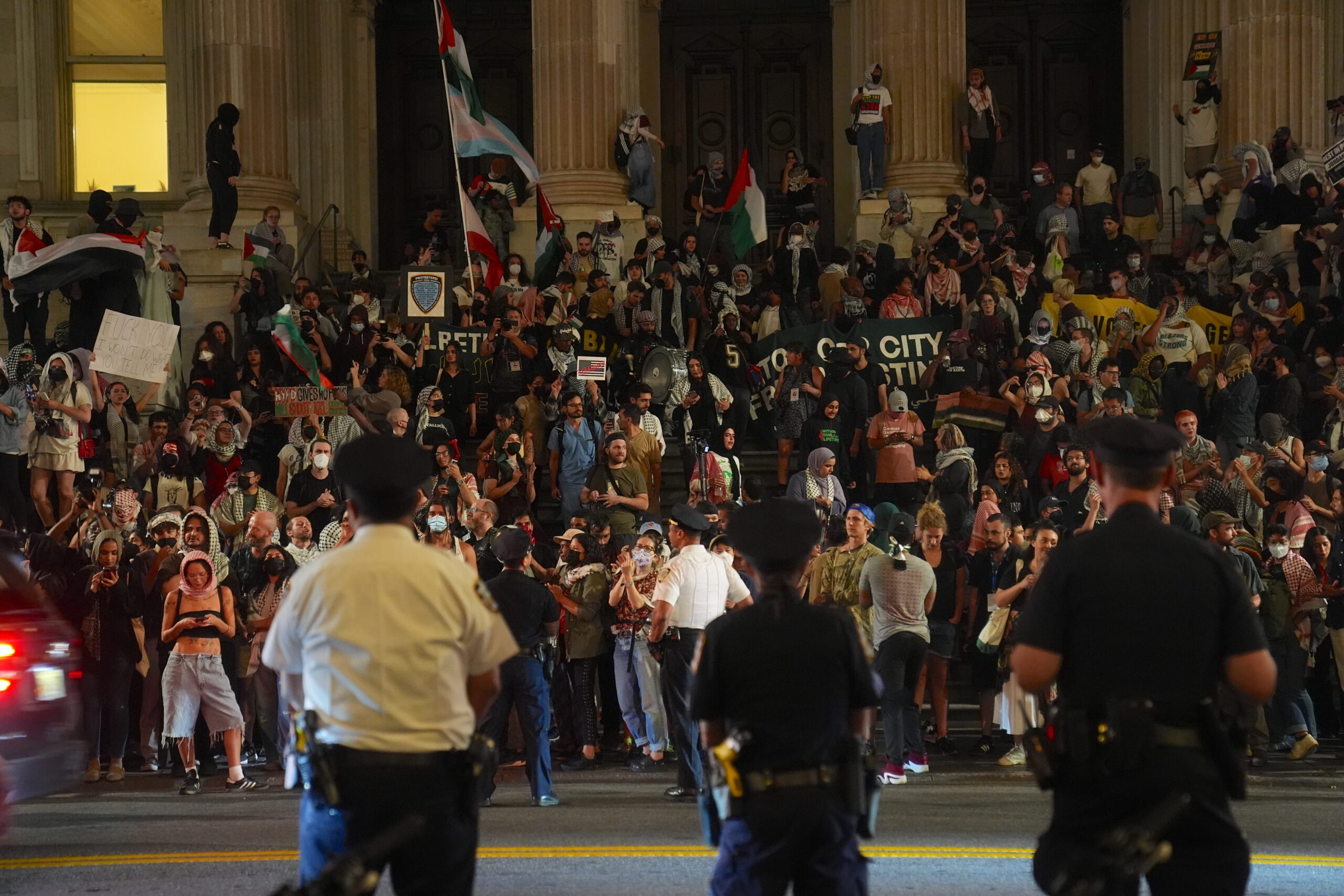 ABD’nin New York kentinde metroya bilet parasını ödemeden giren bir kişiye polisin ateş açması sonucu 2’si ağır 4 kişinin yaralandığı olayın ardından Filistin yanlısı Amerikalıların ve Siyahilerin Hayatı Önemli’dir hareketinin de destek verdiği polis karşıtı protestolar devam ediyor. Brooklyn Müzesi önünde toplanan protestocular kentteki metro duraklarına ve Washington Square Parkı’na yürüdü. Gösteriler sırasında polis hazırda beklerken, çok sayıda gösterici gözaltına alındı.