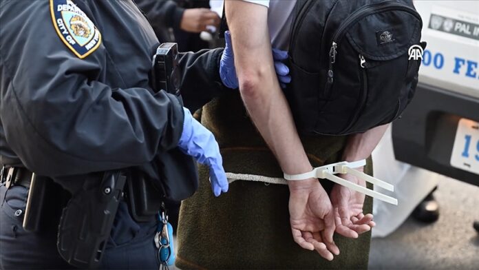 ABD’nin New York kentinde New York Times (NYT) gazetesinin binasında Filistin’e destek için protesto düzenleyen göstericiler gözaltına alındı.