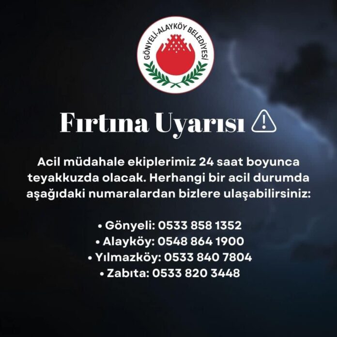 Gönyeli-Alayköy Belediyesi’nin tüm ekiplerinin fırtına süresince sahada olacağını belirten Amcaoğlu, halkın güvenliği için çalışmaların kesintisiz devam edeceğini vurguladı.