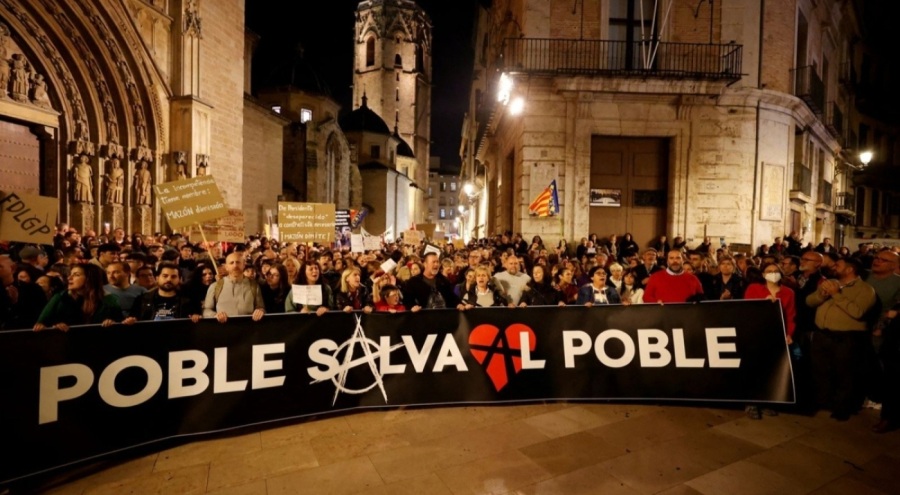 Sol görüşlü 60 kadar sivil toplum kuruluşunun çağrısıyla Valensiya kent merkezinde düzenlenen, sağ görüşlü özerk yönetim hükümetinin hedef alındığı gösteriye katılan Valensiyalılar, sel felaketinin yarattığı büyük yıkımın sorumlusu olarak bir kez daha siyasetçileri gösterdi.