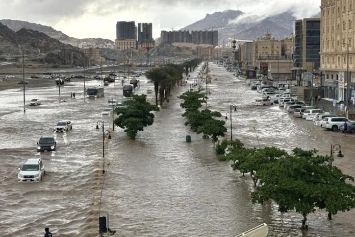 Suudi Arabistan Ulusal Meteoroloji Merkezi, sağanak, dolu ve yıldırım beklentileri nedeniyle Mekke de dahil ülkenin birçok bölgesini kapsayan kırmızı alarm yayımladı.