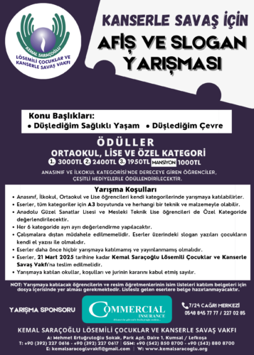 Kemal Saraçoğlu Lösemili Çocuklar ve Kanserle Savaş Vakfı’nın, genç nesilleri bilinçlendirmek ve farkındalığı artırmak amacıyla geleneksel olarak düzenlediği “Kanserle Savaş İçin Afiş ve Slogan Yarışması”nın başvuruları başladı.