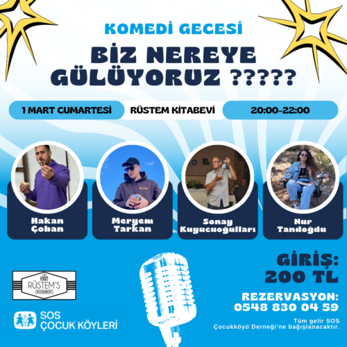 Farkındalık etkinliklerinin yalnızca görsel çalışmalarla sınırlı kalmayacağının belirtildiği açıklamada, “Rüstem Kitabevi’nde 1 Mart Cumartesi akşamı, 20.00-22.00 saatleri arasında gerçekleşecek ‘Komedi Gecesi’ ile toplumsal meselelere farklı bir bakış açısı sunulacak. Mizahın gücüyle, zor konuların daha geniş kitlelere ulaşması hedefleniyor.” ifadelerine yer verildi.