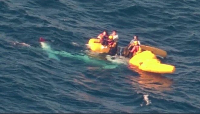 Sahil güvenlik ekipleri, helikopterin yerel saatle 17.05 sularında denizin üzerinde ters dönmüş halde tespit edildiğini ve 3 kişinin kurtarıldığını belirtti.