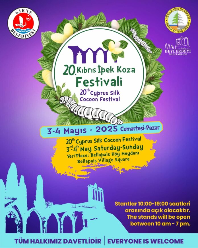 Girne Belediyesi’nin, Beylerbeyi Muhtarlığı ve Yeşil Barış Hareketi iş birliğinde bu yıl 20’ncisini düzenleyeceği Kıbrıs İpek Koza Festivali 3-4 Mayıs tarihlerinde yapılacak.