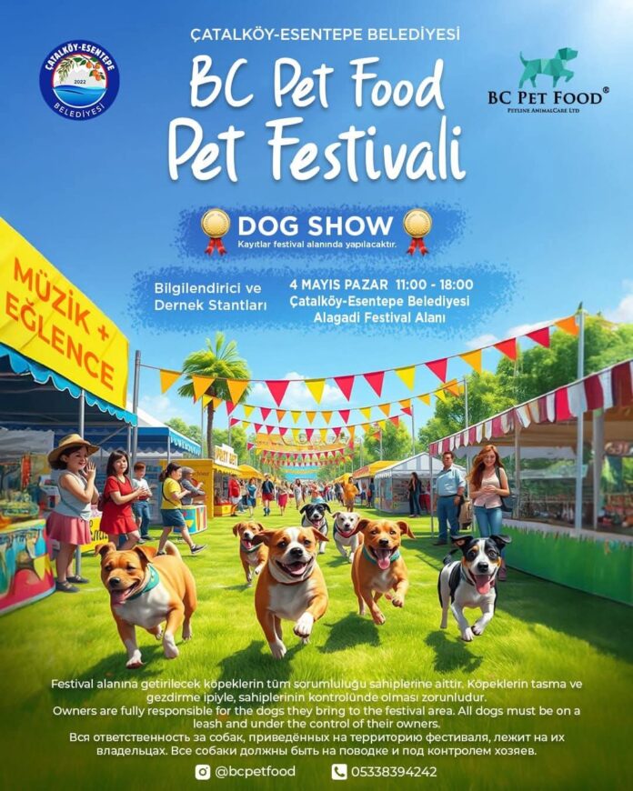 Çatalköy-Esentepe Belediyesi, BC Pet Food Şirketiyle iş birliğinde 4 Mayıs Pazar günü Evcil Hayvan (pet) Festivali düzenliyor.