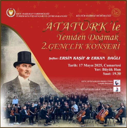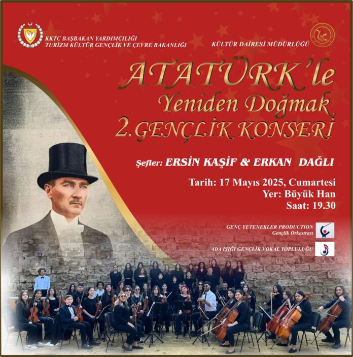 Kültür Dairesi, yarın akşam Büyük Han’da saat 19.30’da halkın katılımına açık olarak “Atatürk’le Yeniden Doğmak 2. Gençlik Konseri”ni düzenliyor. Şef Ersin Kaşif yönetimindeki Genç Yetenekler Production Gençlik Orkestrası’nın 40 kişilik bir grupla, Şef Erkan Dağlı yönetimindeki Ada Işığı Gençlik Vokal Topluluğu’nun da 22 korist ile sahne alacağı konserde, Göç-Taş dansçıları da danslarıyla eşlik edecekler.