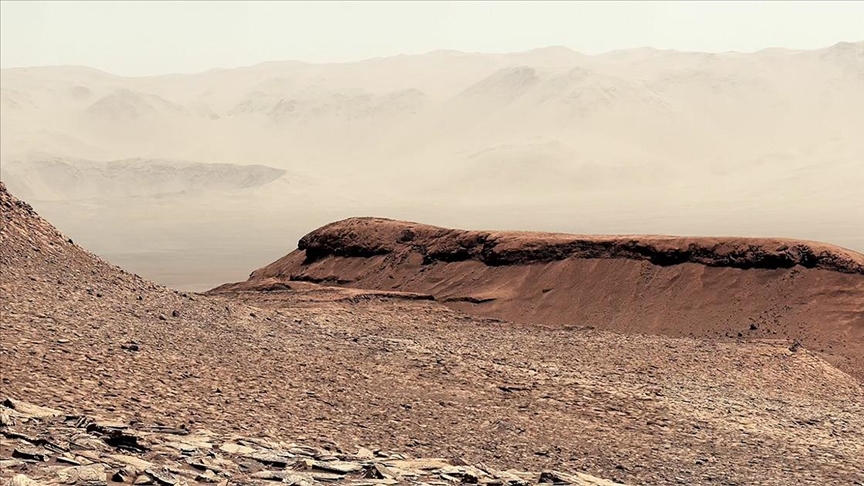 Gale Krateri’nin 5 kilometre üzerinde yükselen dağın eteklerinde çekilen videoda, milyarlarca yıl önce meydana geldiği düşünülen kraterlerin oluşturduğu tepeler görüldü.