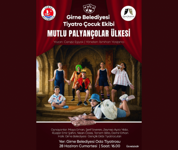 Girne Belediyesi Tiyatro Çocuk Ekibi, Cengiz Eşiyok’un yazdığı ve İsmihan Yorgancı’nın yönetmenliğini üstlendiği ‘Mutlu Palyançolar Ülkesi’ adlı tiyatro oyununu, cumartesi günü saat 16.00’da Girne Belediyesi Oda Tiyatrosu’nda sahneleyecek.