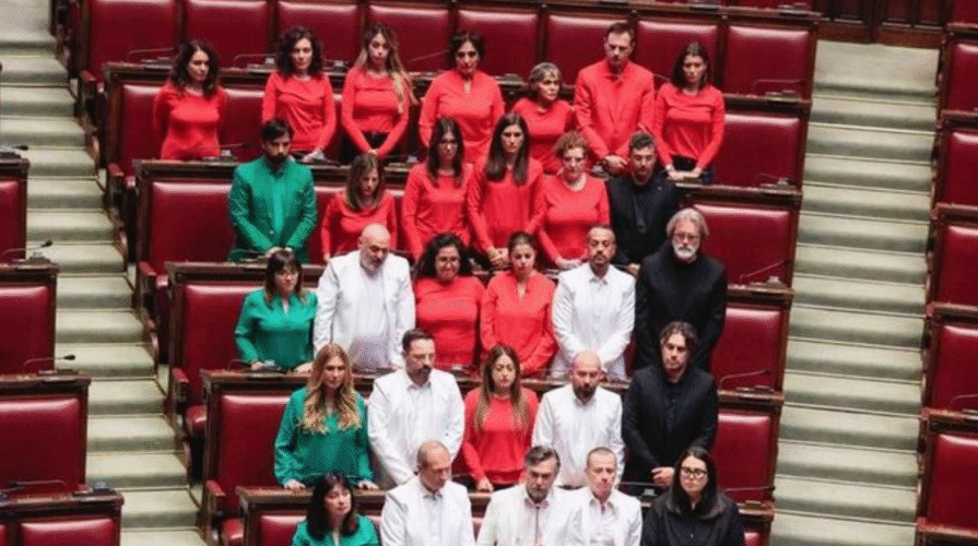 İtalya’da muhalefet partilerinden 5 Yıldız Hareketi (M5S) milletvekilleri parlamento oturumuna Filistin bayrağı renklerini taşıyan kıyafetlerle geldi.