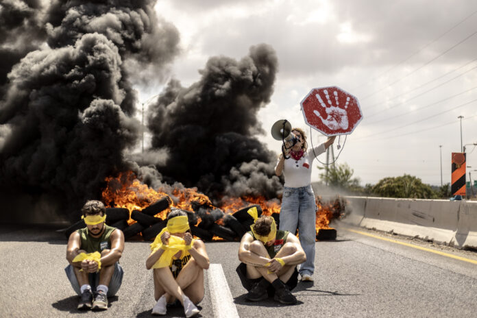 İsrailli esir yakınları, Gazze’de ateşkes ve esir takası anlaşması talebiyle “ulusal mücadele günü” ismiyle duyurdukları ülke çapındaki kitlesel protesto ve eylemlerde pek çok kentte yolları trafiğe kapattı.