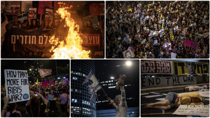 İsrail Kanal 12 televizyonun haberine göre, esirlerin aileleri, yakınlarının serbest kalmasını sağlayacak anlaşmaya varmayı reddeden Netanyahu’yu, evinin önünde protesto etti.