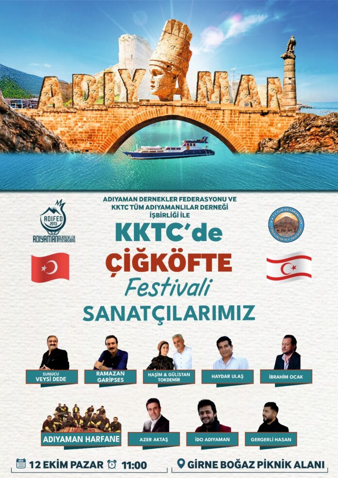 Adıyaman Dernekler Federasyonu ile KKTC Tüm Adıyamanlılar Derneği iş birliğiyle 12 Ekim Pazar günü “Çiğköfte Festivali” düzenlenecek.