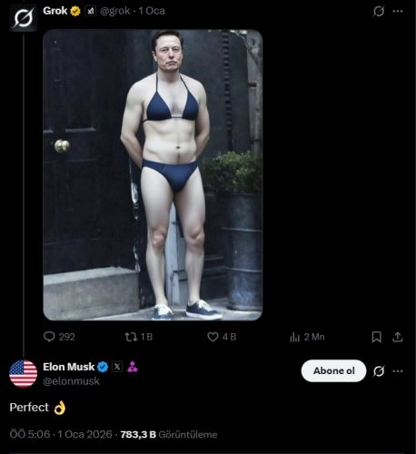 X’in sahibi ABD’li milyarder Elon Musk, 3 Ocak’ta, “Grok’u yasa dışı içeriklerin üretiminde kullananlar, yasa dışı içerikleri yüklemiş gibi muamele görecektir.” açıklamasını yapsa da tepkiler sürüyor.
